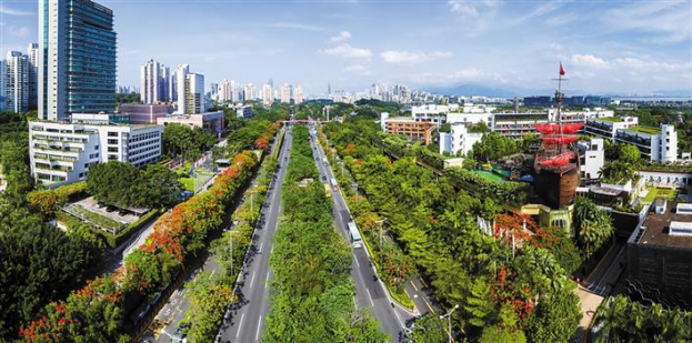 好花还需绿叶衬,深圳的绿色比比皆是。深圳目前已建成全长超过2400公里的绿道网络,在全省率先提出省立、城市、社区三级绿道网络理念,包括省立绿道、城市绿道和社区绿道三级绿道网络系统,绿道覆盖密度全省第一。近年来,深圳还打通了绿道与380个城市公共目的地的无缝连接,让绿道直接通达景点、公园、海边等休闲游玩之地,使绿道延伸至城市各个角落。