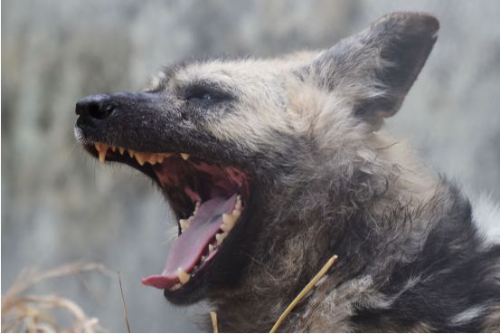 非洲野犬有一双大耳朵,听觉灵敏,能够准确分辨出声音的来源