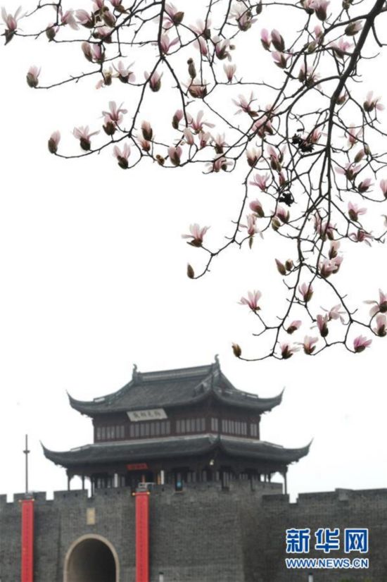 3月3日,江苏苏州环古城河畔玉兰花开放。 新华社发(杭兴微 摄)