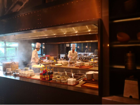 咖啡厅以传统岭南市集为设计灵感,融会深圳当地多元化文化元素,汇聚众多东西方时令美食。餐厅由亚洲大排档、意大利扒房和烘焙档组成,提供国际风味的自助早餐和晚餐,以及全天候零点菜单。客人徜徉其间,探索亚洲及环球美食的同时还能欣赏厨师的现场烹饪表演。