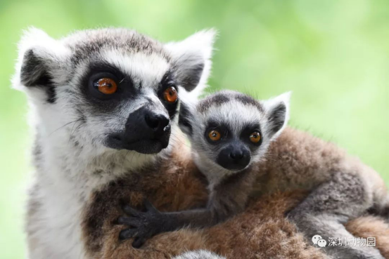嗨,我是乖巧的环尾狐猴宝宝,紧紧抓住妈妈的背,我才有安全感。