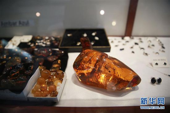 这是5月3日在多米尼加首都圣多明各的琥珀博物馆拍摄的琥珀和蓝珀。加勒比海岛国多米尼加盛产琥珀,同时也是世界珠宝极品——蓝珀的主产地。蓝珀在阳光下呈现出梦幻的蓝色,是琥珀中最珍贵的品种,被珠宝业界公认为“琥珀之王”。多米尼加琥珀博物馆位于圣多明各市中心的哥伦布广场旁,这里除了展示各式各样的琥珀外,还有关于琥珀历史和琥珀知识的展览。新华社记者淡航摄