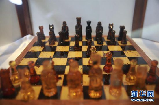 这是5月3日在多米尼加首都圣多明各的琥珀博物馆拍摄的用琥珀制成的国际象棋。加勒比海岛国多米尼加盛产琥珀,同时也是世界珠宝极品——蓝珀的主产地。蓝珀在阳光下呈现出梦幻的蓝色,是琥珀中最珍贵的品种,被珠宝业界公认为“琥珀之王”。多米尼加琥珀博物馆位于圣多明各市中心的哥伦布广场旁,这里除了展示各式各样的琥珀外,还有关于琥珀历史和琥珀知识的展览。新华社记者淡航摄
