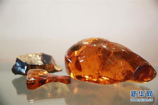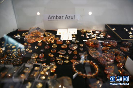 这是5月3日在多米尼加首都圣多明各的琥珀博物馆拍摄的琥珀和蓝珀。加勒比海岛国多米尼加盛产琥珀,同时也是世界珠宝极品——蓝珀的主产地。蓝珀在阳光下呈现出梦幻的蓝色,是琥珀中最珍贵的品种,被珠宝业界公认为“琥珀之王”。多米尼加琥珀博物馆位于圣多明各市中心的哥伦布广场旁,这里除了展示各式各样的琥珀外,还有关于琥珀历史和琥珀知识的展览。新华社记者淡航摄