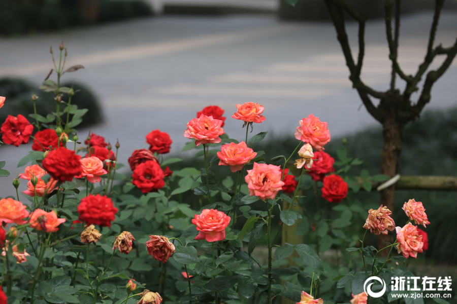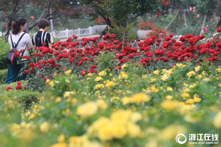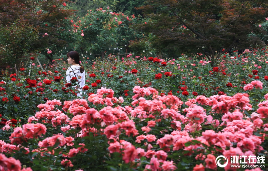 杭州花圃月季园现有100多个月季品种,5万余株月季,总面积近万平方米,是目前杭州主城区最大规模的月季专类园。园内有树状月季、藤本月季、大花月季、丰花月季、微型月季等,层次分明,别具特色。(浙江在线记者李翔 摄)
