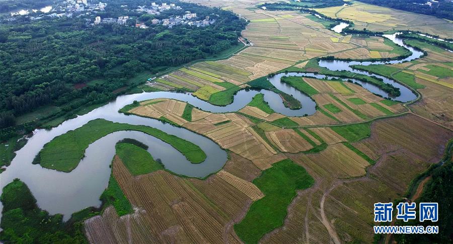 海口市琼山区云龙镇的村镇掩映在绿树和湿地中(5月30日无人机拍摄)。近年来,海口市用生态修复的方法对山水林田湖草进行一体化生态修复。截至目前,海口市共消除黑臭水体面积逾720万平方米,建成区32条水体中31条告别黑臭。据介绍,海口生态修复带动湿地入城,不仅改善水体水质,增强生态自我修复的能力,还在抵御洪水、调节径流、调节气候等方面起到重要作用。新华社记者赵颖全 摄