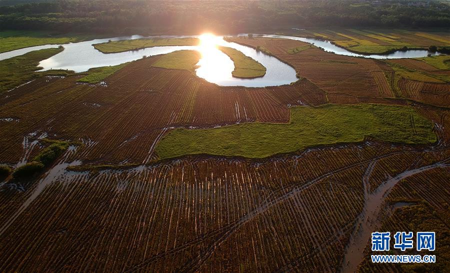 海口市琼山区曲溪湿地(5月30日无人机拍摄)。近年来,海口市用生态修复的方法对山水林田湖草进行一体化生态修复。截至目前,海口市共消除黑臭水体面积逾720万平方米,建成区32条水体中31条告别黑臭。据介绍,海口生态修复带动湿地入城,不仅改善水体水质,增强生态自我修复的能力,还在抵御洪水、调节径流、调节气候等方面起到重要作用。新华社记者赵颖全 摄