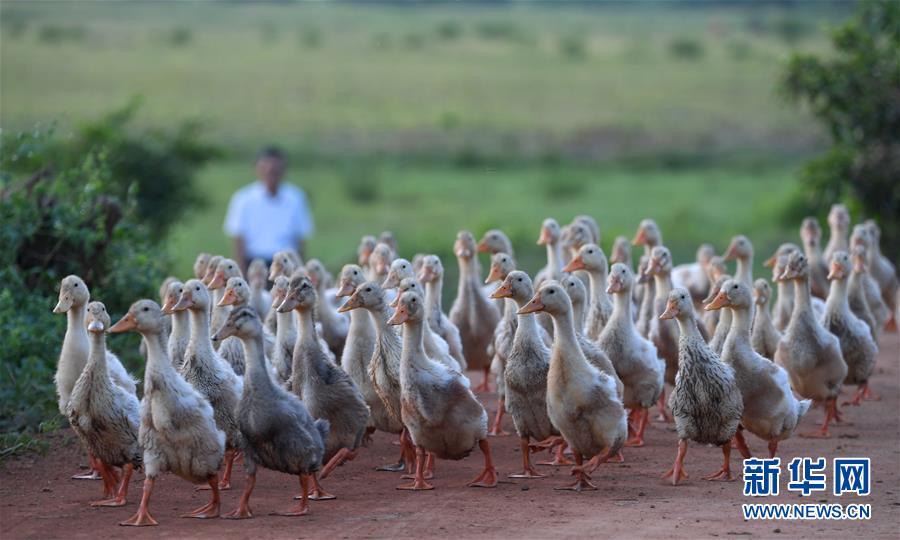 海口市琼山区曲溪湿地,当地村民依靠养鸭脱贫致富(5月30日摄)。近年来,海口市用生态修复的方法对山水林田湖草进行一体化生态修复。截至目前,海口市共消除黑臭水体面积逾720万平方米,建成区32条水体中31条告别黑臭。据介绍,海口生态修复带动湿地入城,不仅改善水体水质,增强生态自我修复的能力,还在抵御洪水、调节径流、调节气候等方面起到重要作用。新华社记者赵颖全 摄