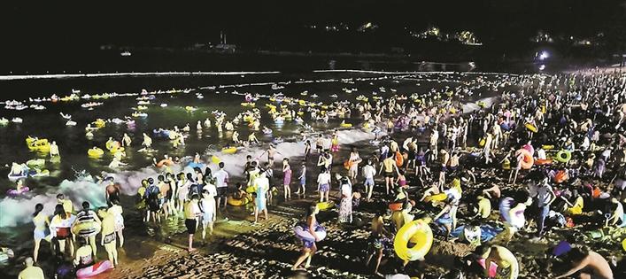 近日,鹏城天气十分炎热,素有东方夏威夷美誉的小梅沙度假村人头涌动,人们纷纷前来踏浪嬉水,夜晚更是热闹非凡。韦建诚 摄