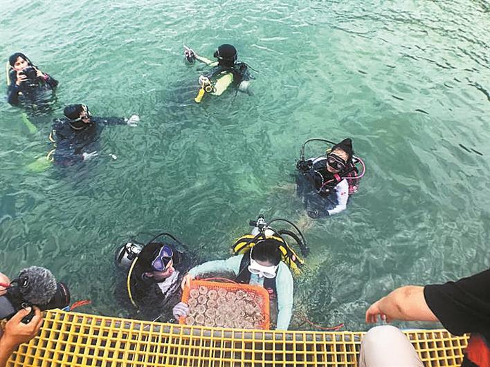 昨日上午,全国规模最大的海底珊瑚育林活动在大鹏新区启动。 陈舒明 摄