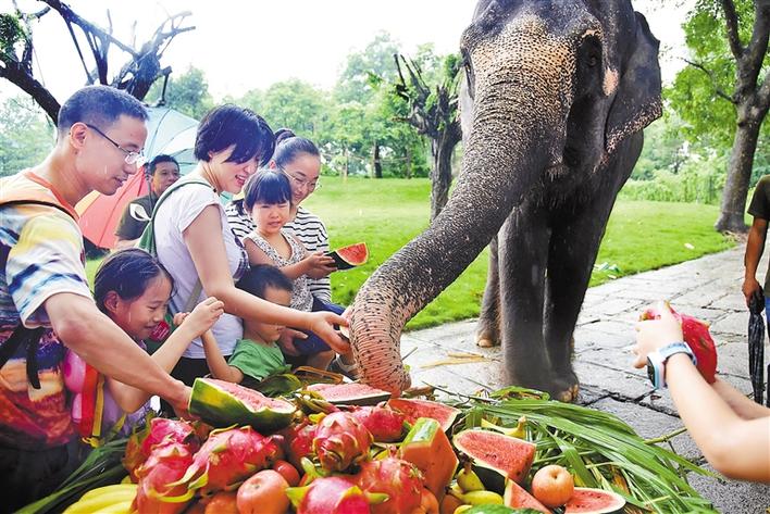 昨日,是世界大象日。深圳野生动物园里的大象与游客亲密互动,游客为大象喂多种果蔬美食,欢乐庆祝这个节日。
