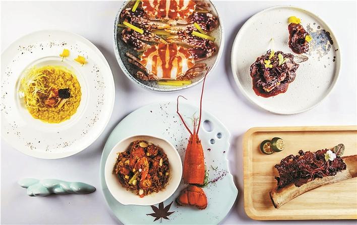 清酒煮花蟹酒汤清澈见底,但味道却辛辣沉香。花蟹的肉质鲜美紧致,清酒煮后的蟹肉有酒之浓香。酒的辛辣之味经烹煮过后有所缓和,同时也增添了些许甘甜。文火慢煮历练出回味无穷的极鲜滋味。宫廷御膳鸭以玫瑰露酒与酒酿浸煮,煮出肉质原香,大火翻炒锁住浓郁原汤肉汁,肉质软嫩醇香。香茅做底将热油浇至鸭肉之上,使香茅气味浸润鸭肉之中,滚油淋过的鸭肉外酥里嫩,唇齿留香。黄鱼烧年糕为淮扬菜之经典,煎至酥黄的黄鱼煮出鲜美的汤汁,浸润了软糯Q弹的年糕。鱼肉味道浓香,肉质鲜嫩,年糕劲道不粘牙,吸收香浓汤汁,味道绝佳,使本无关联的两样东西浑然一体。辣酒汁花螺则用黄酒与辣鲜露做汁,味道辣味爽口,螺肉口感劲道,韧性十足。味道清香辛辣,保有螺肉之鲜美,也不乏爽口滋味,是佐酒配餐的首选美味,口感丰富,令人垂涎欲滴。除了以上菜品外,温拌鲜鲍鱼、红花汁捞饭配蟹肉等特色菜品同样不容错过。(吴智欣)