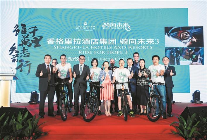 香格里拉酒店集团于日前在广州香格里拉大酒店举行媒体发布仪式,宣布由旗下30家酒店共同参与的“骑向未来3”公益项目正式启动。通过社交媒体平台公开招募的32位主力骑手将于15天内累计骑行5,000公里。由25座城市的香格里拉酒店、嘉里酒店、盛贸饭店分别组织的5000名本地骑手,还将在不同路段参与接力骑行。此外,骑行所经过的部分酒店还将举办公益晚宴、义卖等一系列活动,部分所得将捐赠给爱佑慈善基金会,帮助 “爱佑晨星” 项目中100位患有先天性髋关节脱位的孤贫儿童接受及时治疗。