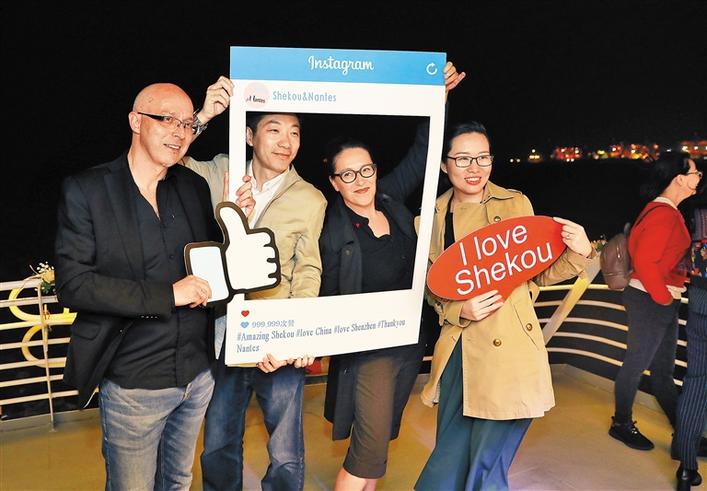 海风拂面,夜色阑珊。11月22日晚,法国南特科幻节发起人吉勒斯和玛丽·马桑等前来参加科幻大会的中外嘉宾在太子湾邮轮母港乘坐游船,欣赏夜幕下的海上深圳美景。本次活动是中国科幻大会的重要活动之一,由“科学与幻想成长基金”与深圳蛇口街道联合举办。