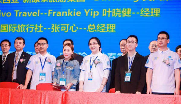 同期会上还举行了签约仪式。中华龙旅游集团总经理邓厚军携众高管在会上与鸥翔国际旅行社、马来西亚新康泰旅游集团、Active Travel、长坤国际旅行社和文莱皇家航空、大韩航空、印尼鹰航空、香港快运航空当场签署战略合作协议。
