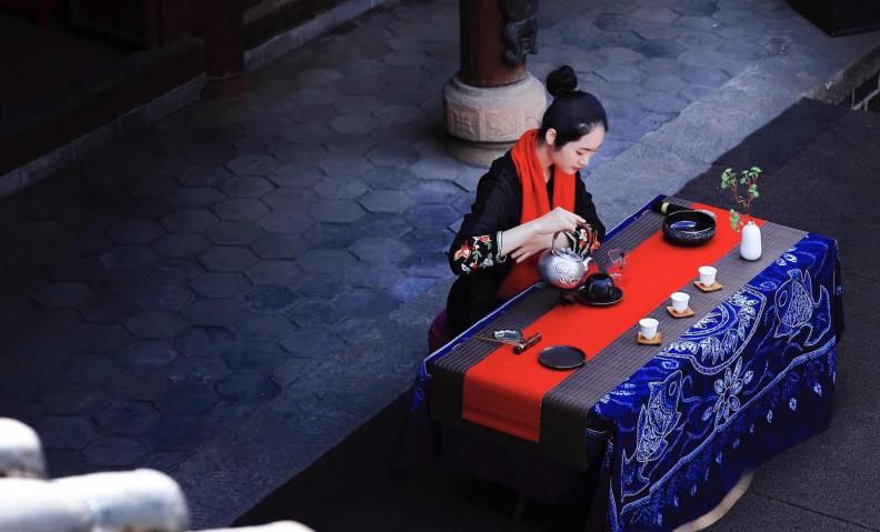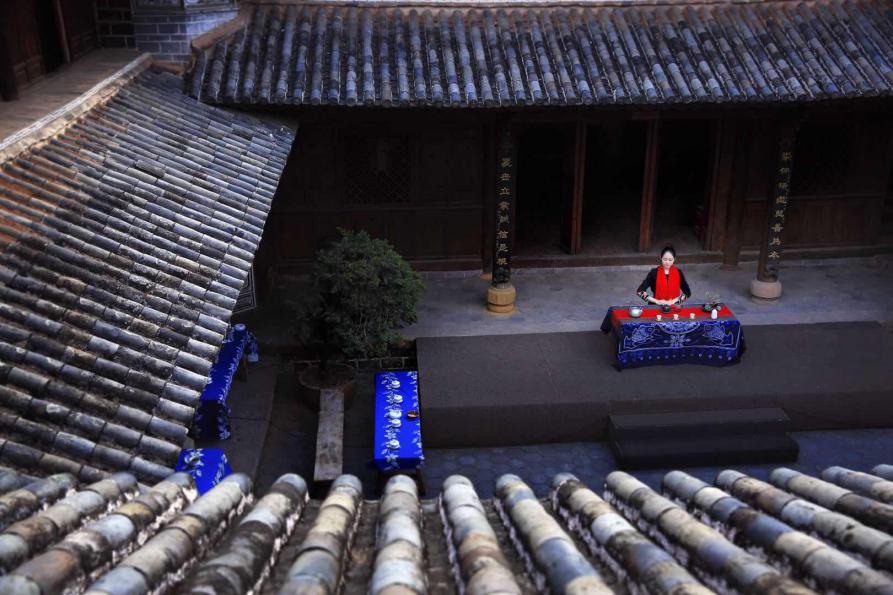 ·5月4日,车队在大理南诏古都巍山举行的茶马古道交流会别具特色,茶师琼阳在古香古色的老宅里演绎茶美,一壶醉人的红茶,为古宅生色添香。
