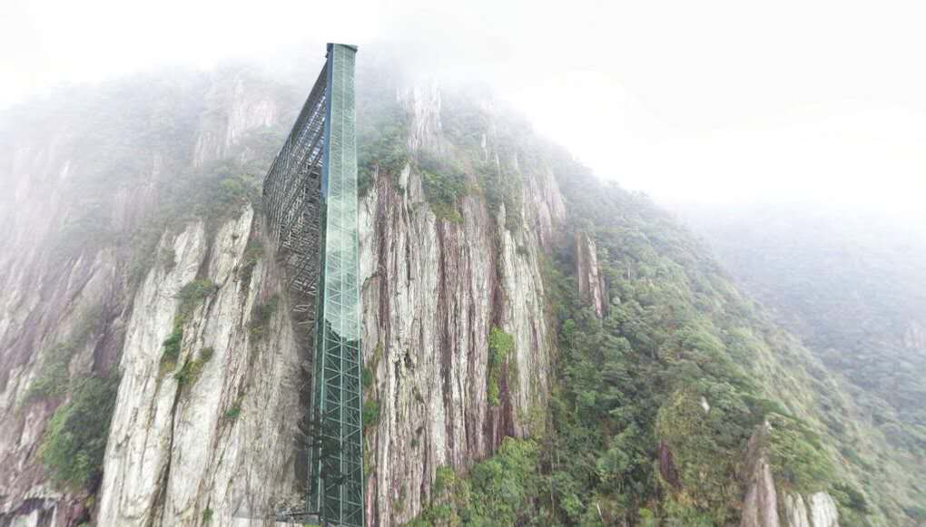 山顶上,莽山正在修建两部悬崖电梯——小天台电梯和摩天岭电梯。小天台电梯垂直高度约128米,运行高度约118米,乘坐垂直电梯凌空而上,宛若一条游龙在悬崖云海间穿越。