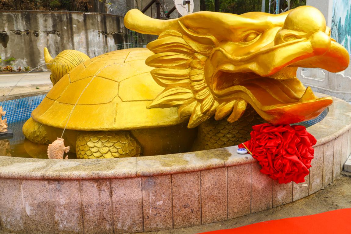据悉,魁星是中国古代星宿名称,也是民间所说的文章兴衰的主宰,在如是学子心中,魁星具有至高无上的地位。观音山魁星苑位于吉祥路,取“文曲华世”、“光昌文运”之意而名,内涵丰厚。传说鳌与魁星有着密切的关系,科举考试中,状元郎必须站在殿前“鳌头”上,因此隐喻为“独占鳌头”,后人也常将“独占鳌头、鳌里夺尊”等词汇比喻杰出人物中的佼佼者的美好寓意。记者观察,魁星苑中,一处碑廊立于其中,群山连绵、群鸟齐飞、云雾渐起的飘渺山水之景生动地延展在石碑上。金鳌驻守在碑廊旁,头尾似龙,身似陆龟,全身金黄,似蛰伏,似守护,呈“鳌里夺尊”的大气之势,与碑廊、文化艺术林相映成趣。