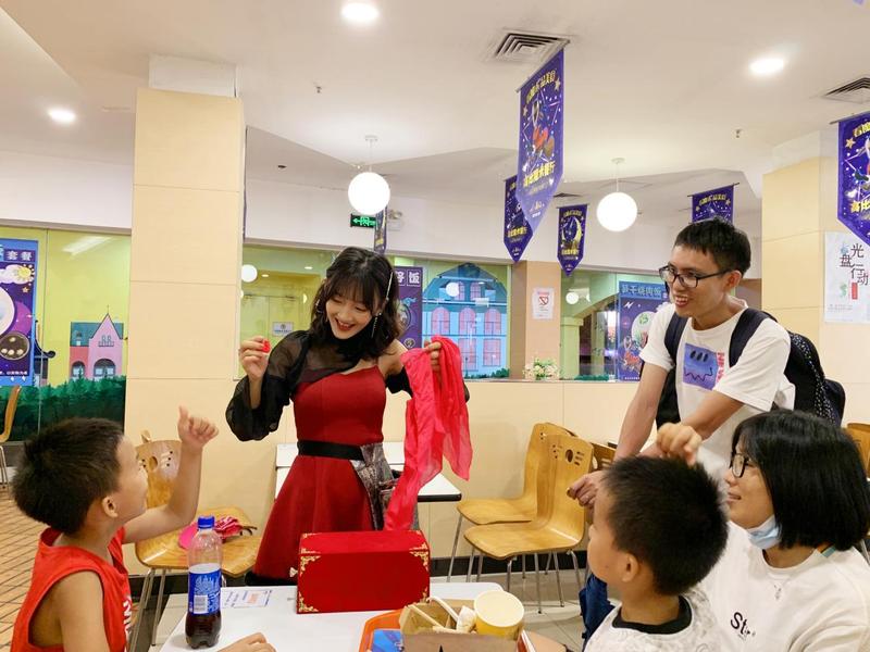 在项目运行中,实行双岗安检模式,提升接待速度,节省游客排队时间;在节目演艺中,开展特色服务,在主题餐厅表演滑稽魔术互动秀,带给游客倾情体验;在对客服务中,耐心解答游客各类问题,现场处理突发事件,设置特色服务岗,为游客提供无微不至的服务,让游客欢乐游玩。