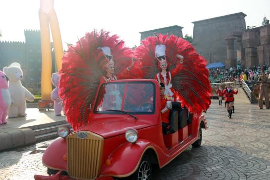 下午四点环球舞台的新年狂欢大巡游,来自世界五大洲的演员身着喜庆吉祥的新年装扮,载歌载舞,为游客献上热烈诚挚新年祝福。